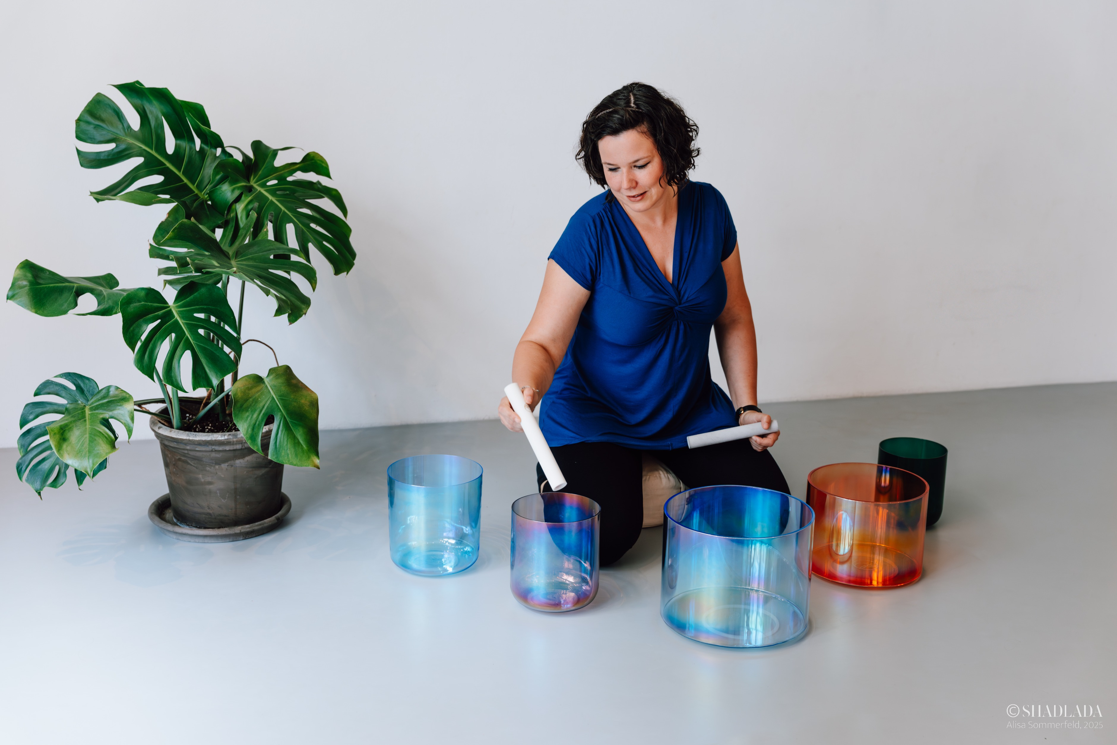 Als ausgebildete Sound Pracitionerin unterstütze ich mit den besonderen Klängen der Kristallklangschalen bei der Entspannung, Visualisierung und Fokussierung.
